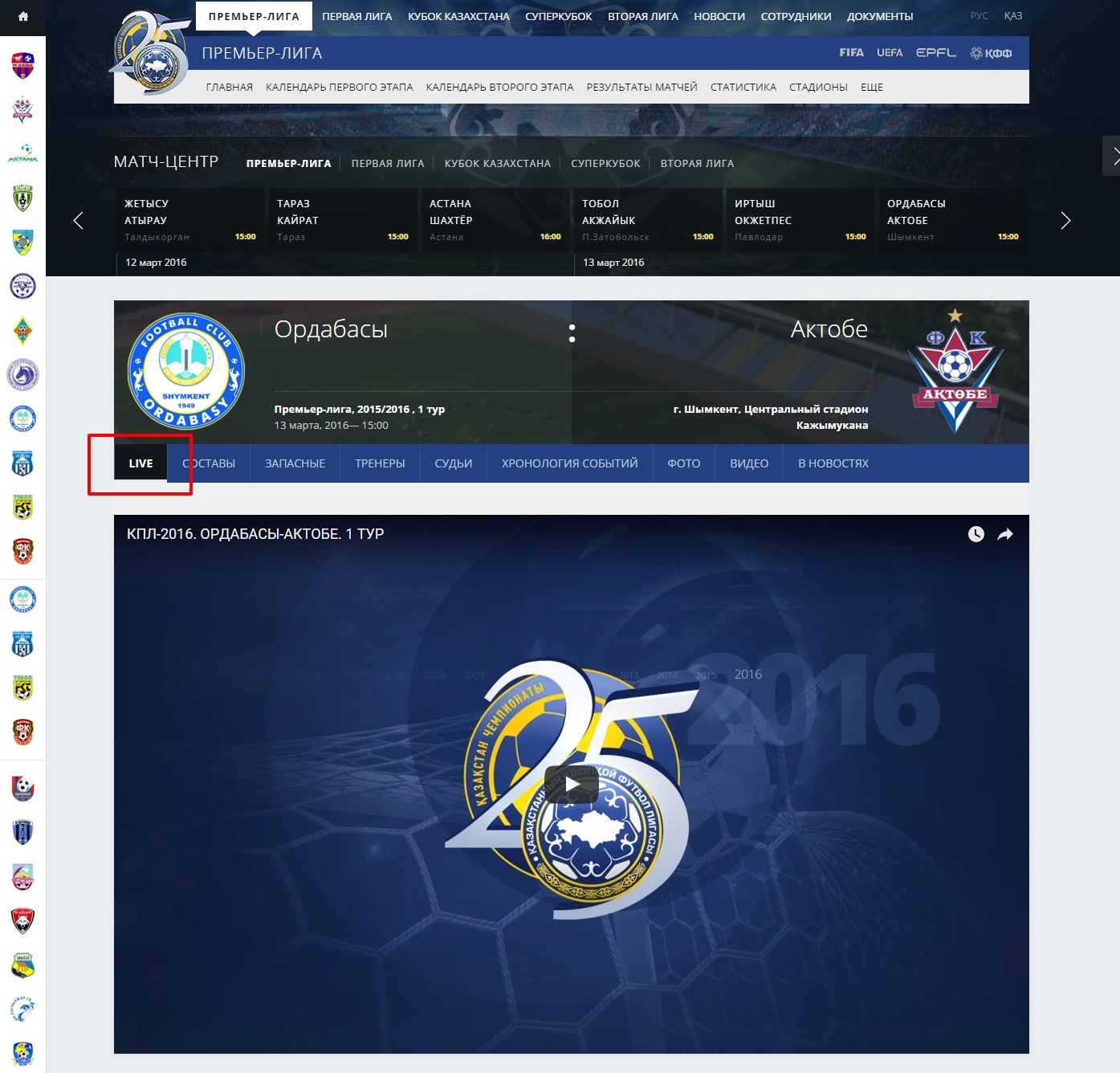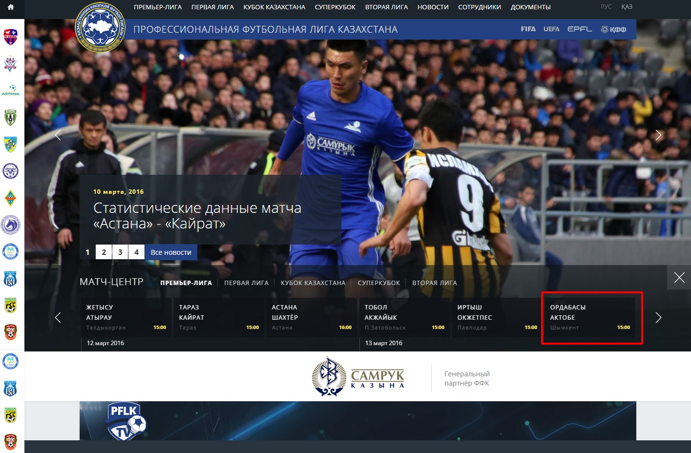 «Ордабасы» - «Актобе» - 15:00.
